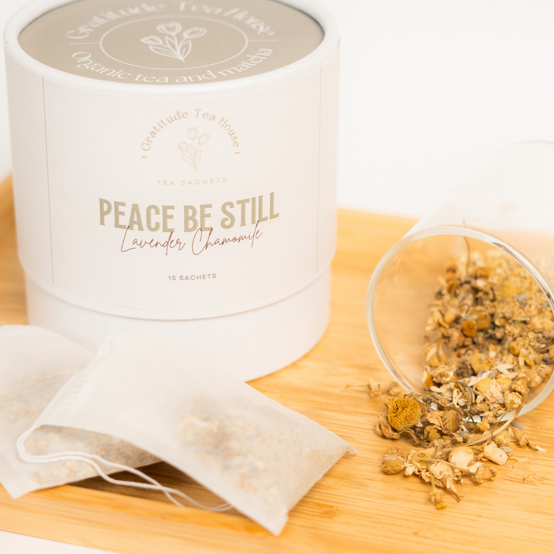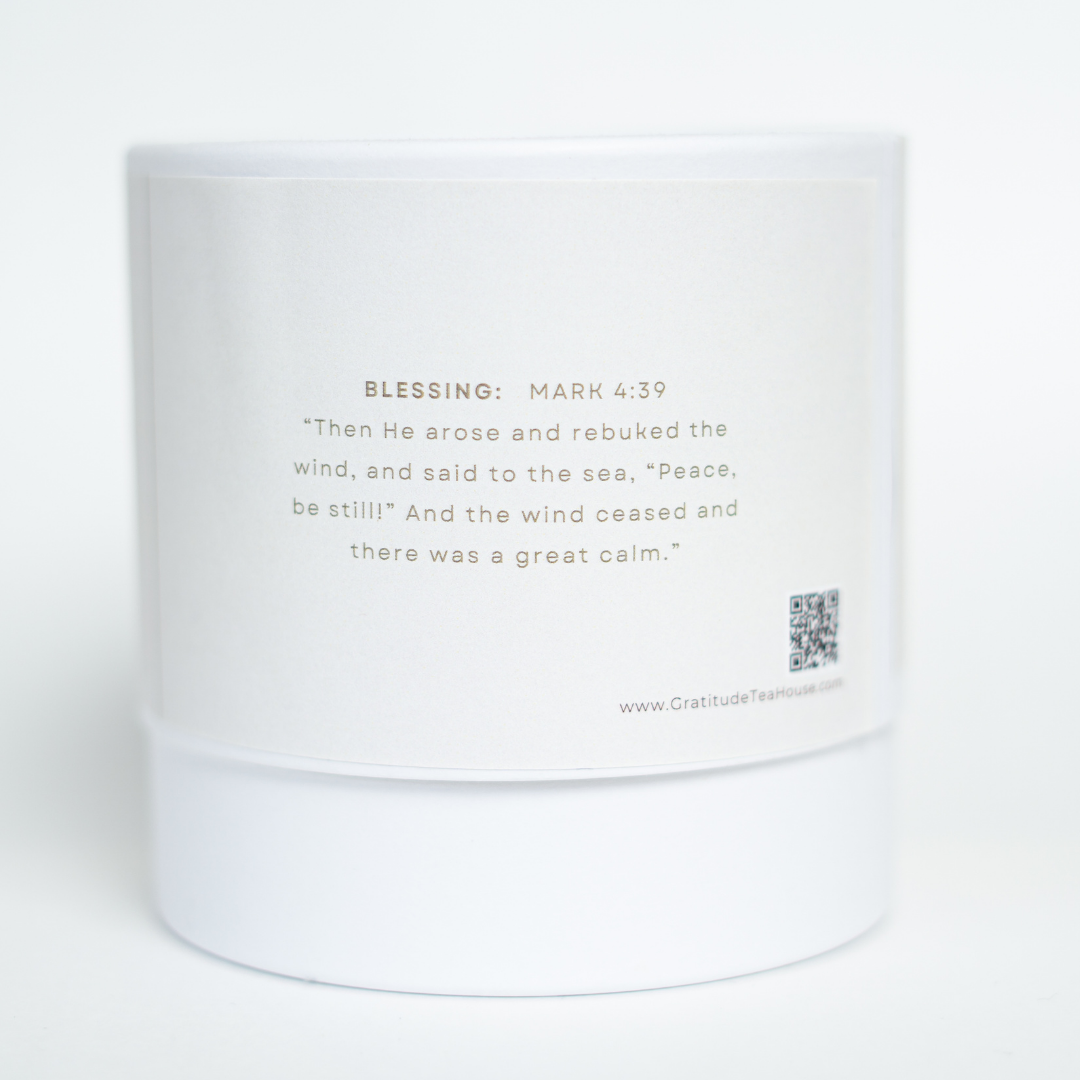 Our Peace Be Still tea is a calming blend of lovely chamomile and delicate lavender. It offers soothing notes to help relax the body, mind, and spirit. This is a perfect tea to relax at the end of the day, open up a good book and spend time in God's presence.
