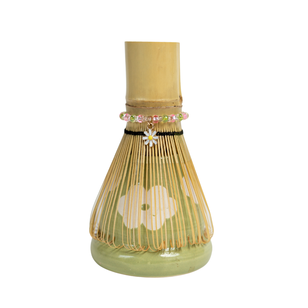 Here’s a delightful little addition to your matcha experience. A tiny, beaded bracelet designed to slip onto your whisk (chasen), blending function with whimsy ✨🍵. It's a sweet reminder to slow down, give thanks, and stir up joy in every cup 💚.